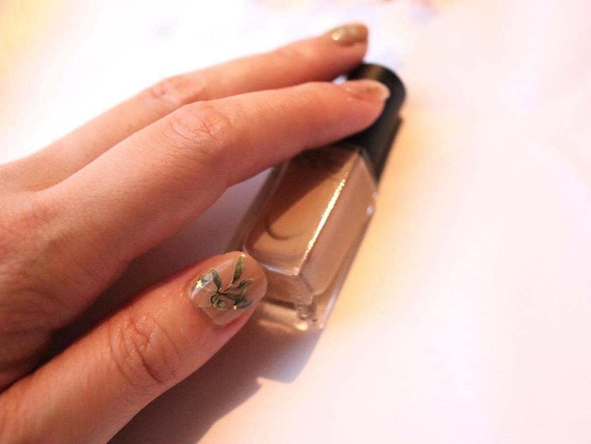 ベージュのポリッシュを合わせて見ましたが、ネイルシールと相性抜群!