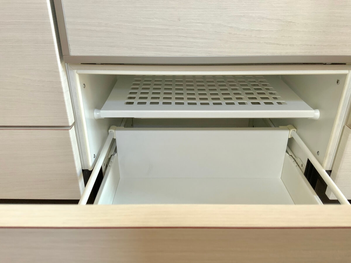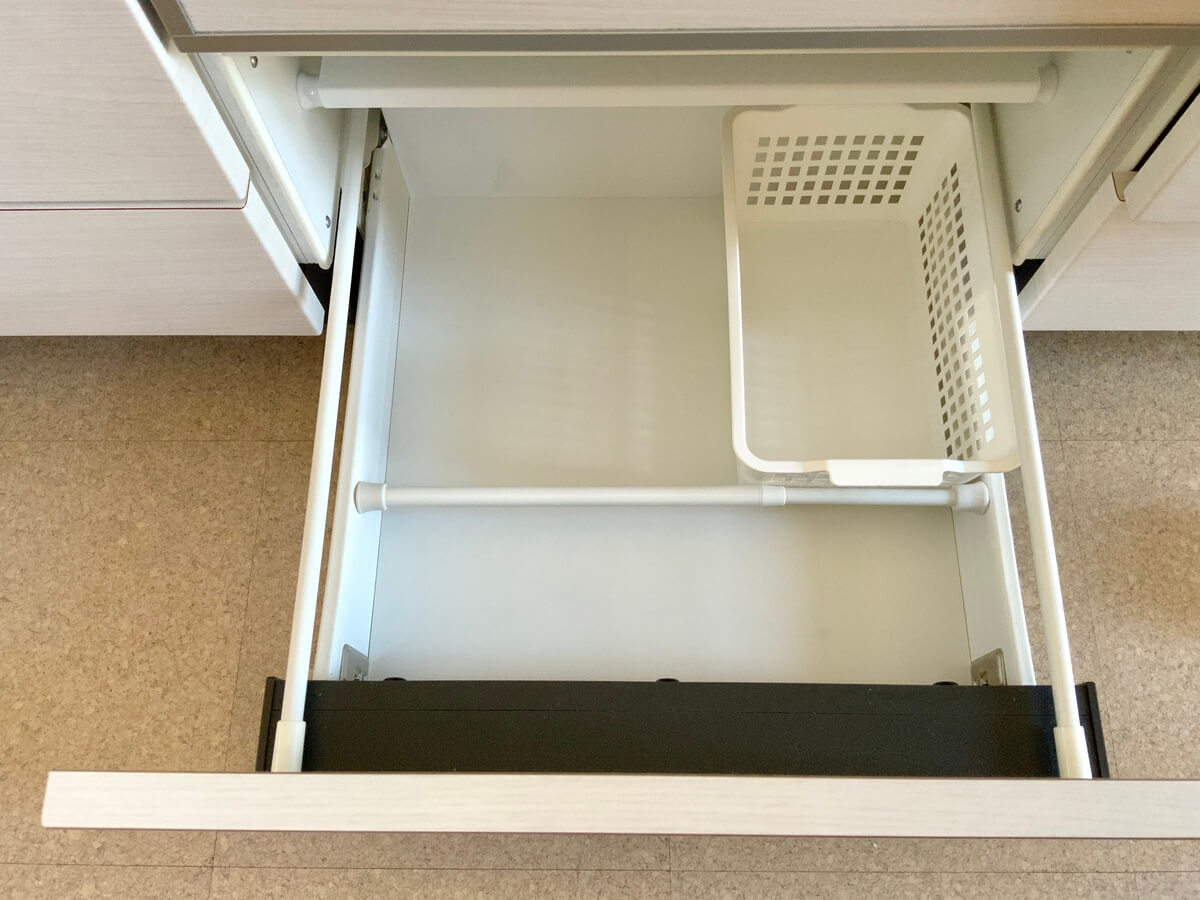 シンク下の限られたスペースでの常備食収納ですが、引き出しの奥にはデッドスペースがありました。