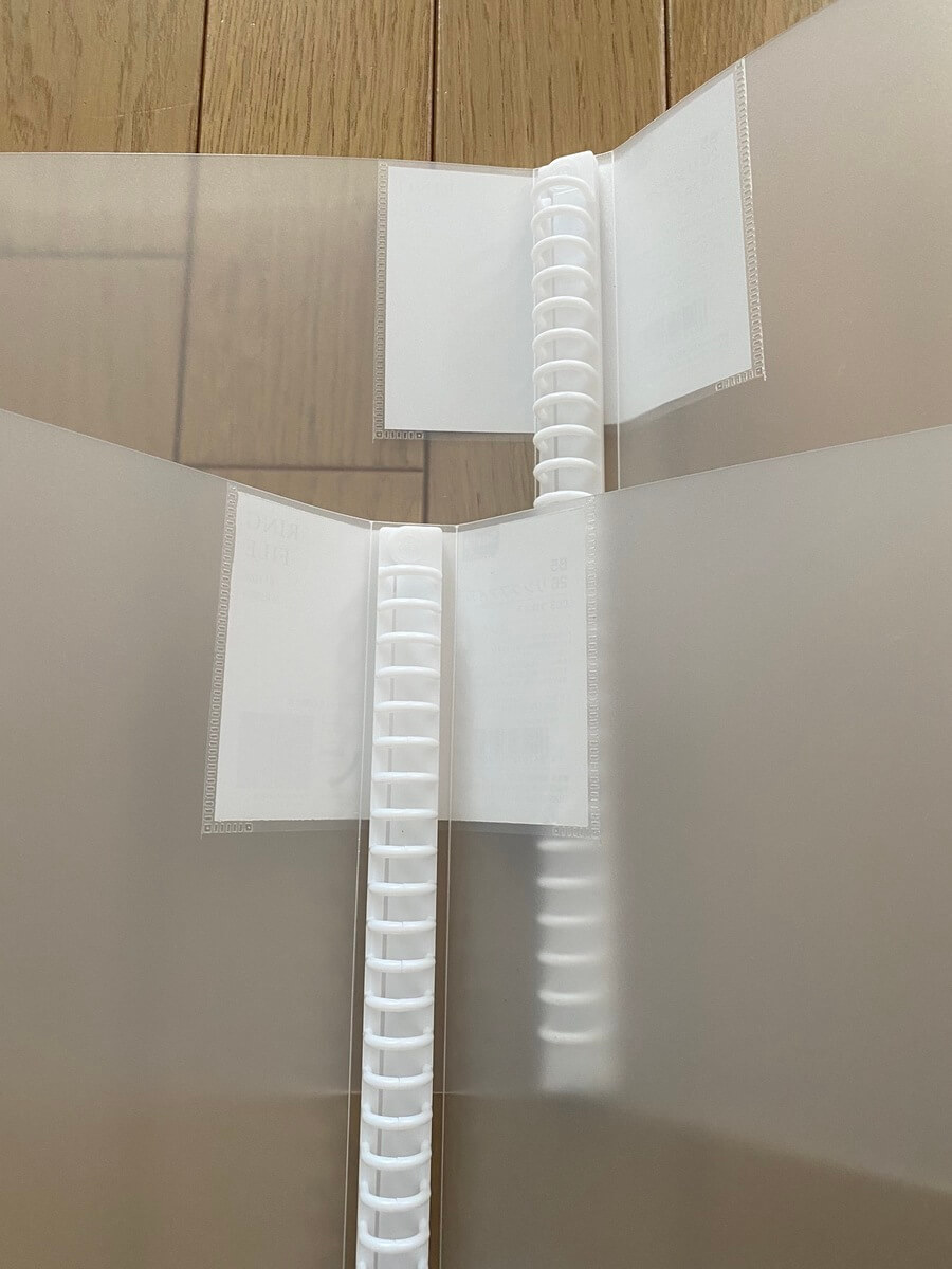 26穴用です。 同じもので揃えると、立て掛けた時の見た目がスッキリするので、購入する際はまとめて買ってしまいます。 やはり、半透明のホワイトがわたしはお気に入りです。