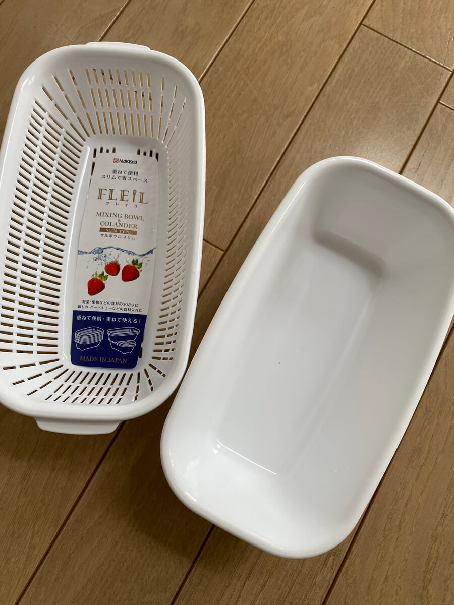 ザルとボウルのセットで100円(税別)です。