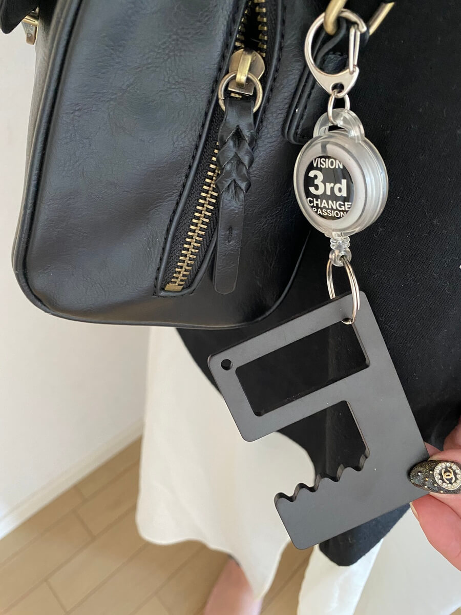 いちいちカバンから取り出すのは手間も掛かるし、面倒くさいので、おすすめのアイデアとしては、いつも使うカバンにぶら下げておくこと。