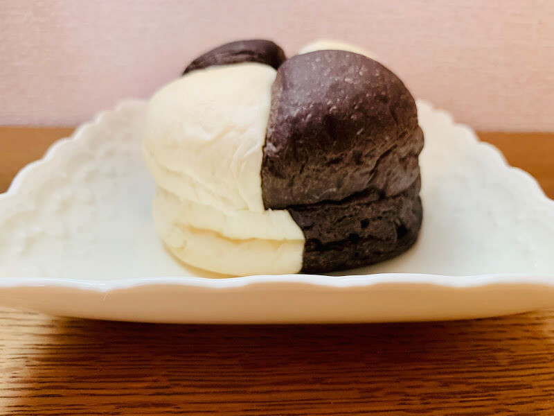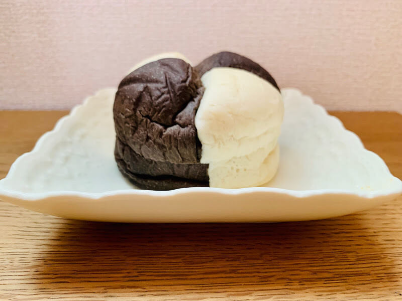 パンダをイメージした白と黒の2色カラーです。なんとなく昔よく見かけた3色パンを思い出しました♪