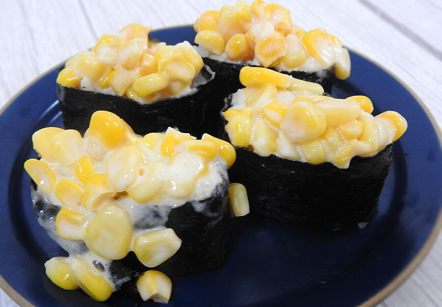 がってん寿司「コーン軍艦×2・握り玉子×2・いか・いなり・お子様えび」(税込108円/2貫)の正直レビュー