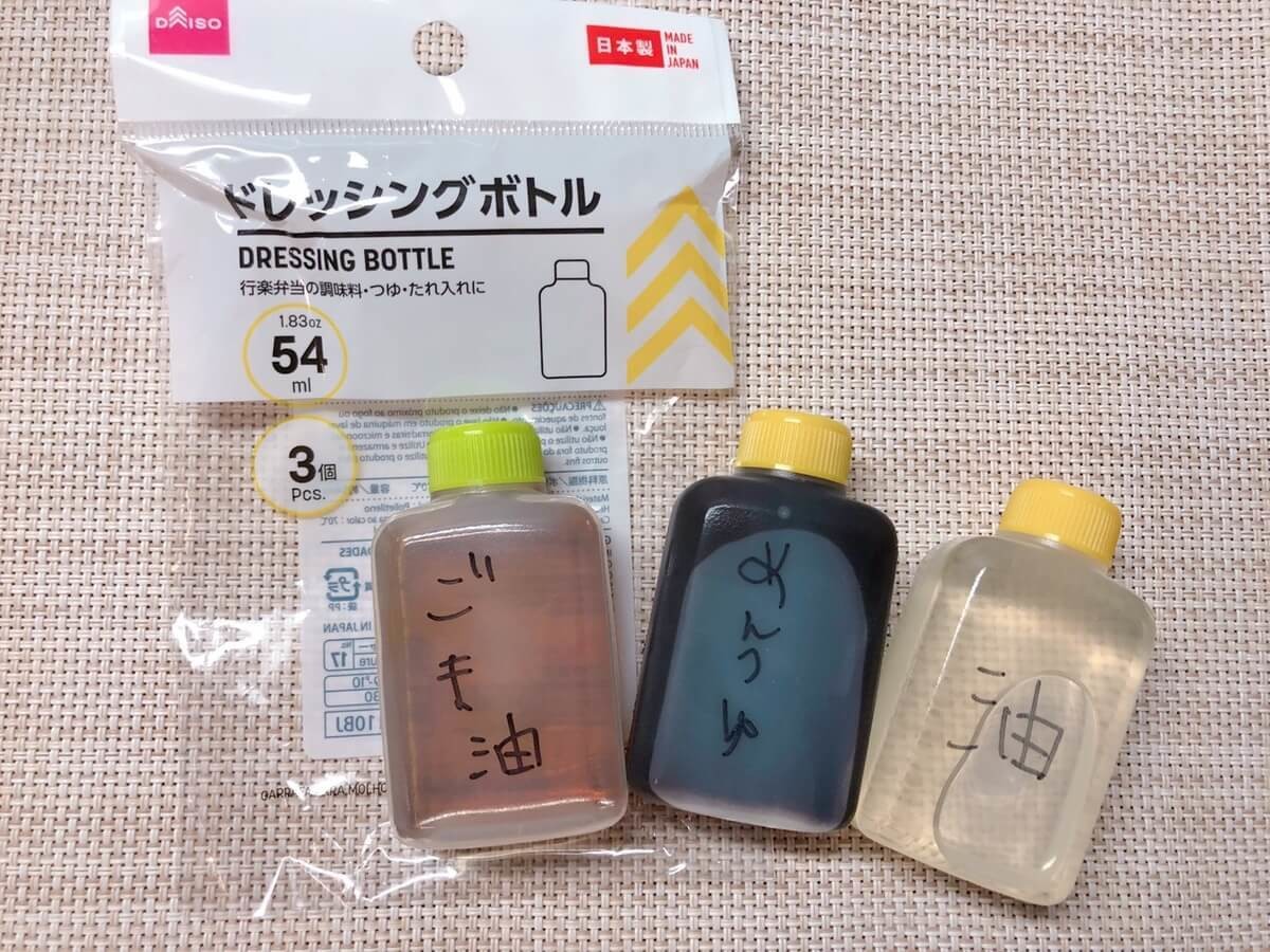 そんな時はこのドレッシングボトルに必要な調味料を入れて持っていけば無駄が出ません♪私は旅行先でも数回は自炊をしたい派なので毎回、めんつゆ、油、しょうゆ、ごま油などを入れて持っていきます。