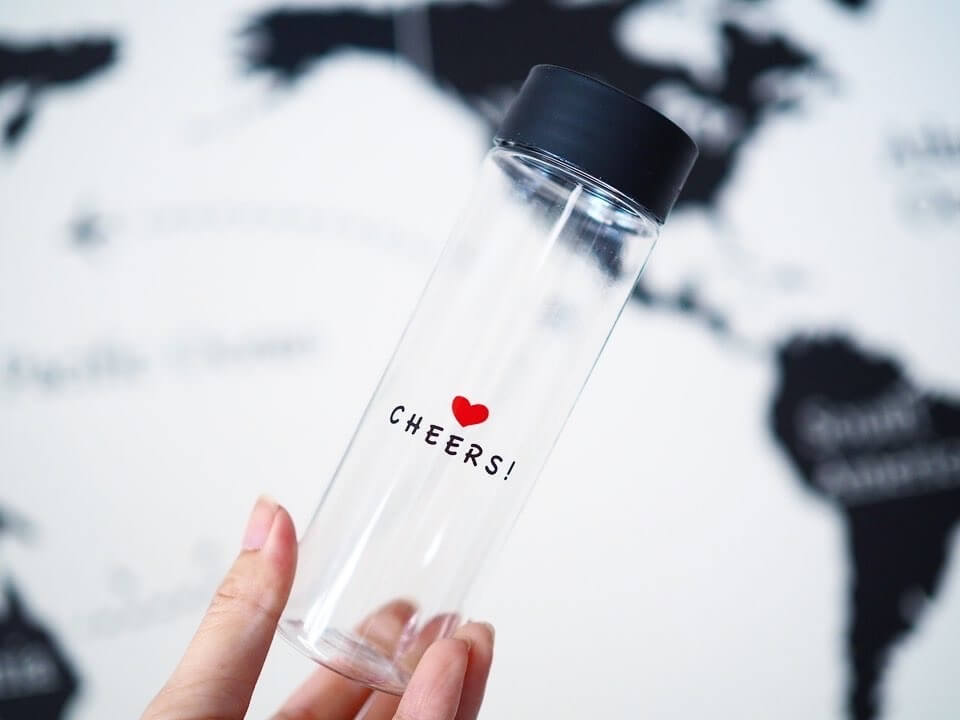 第10位はセリア新商品、ハートのワンポイントがかわいい「スリムミニドリンクボトルチアーズ 180ml」です。