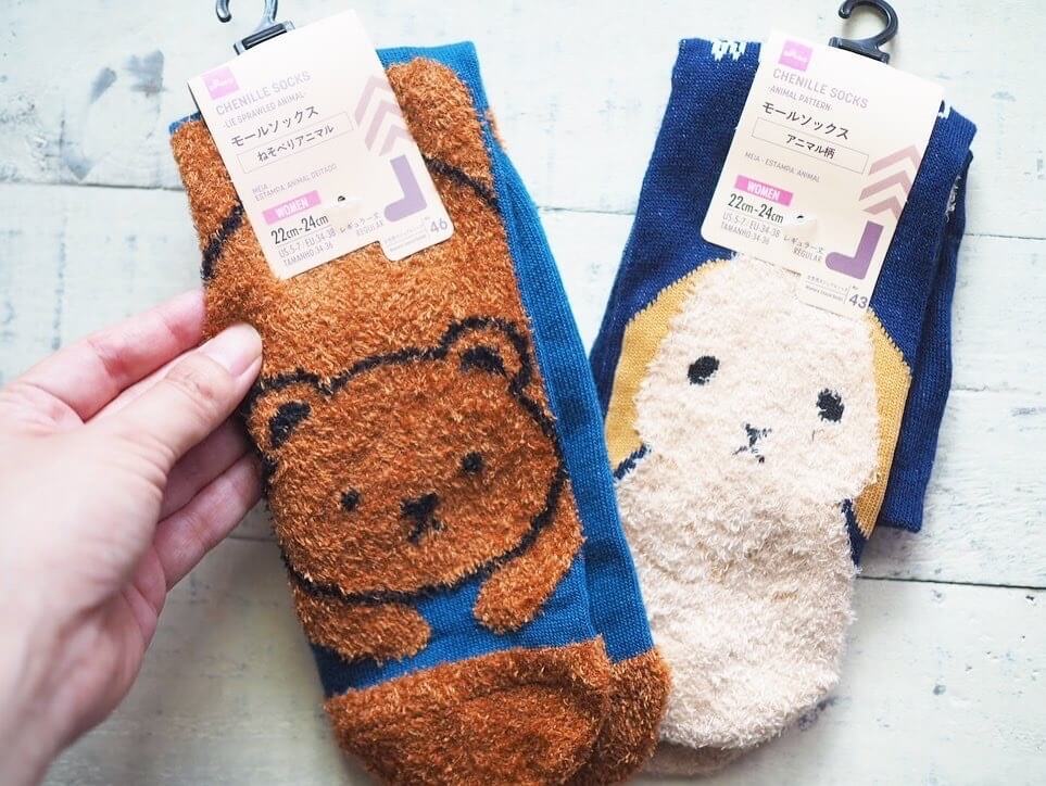 続いてはダイソー冬の新商品の、アニマルデザインがかわいいソックスです。