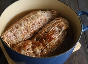 *鍋は大きすぎないものをお使いください。塊肉2個を入れ、調味料を入れた状態で下記写真Aのような状態になる大きさが理想です。