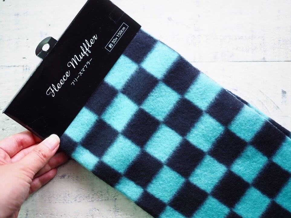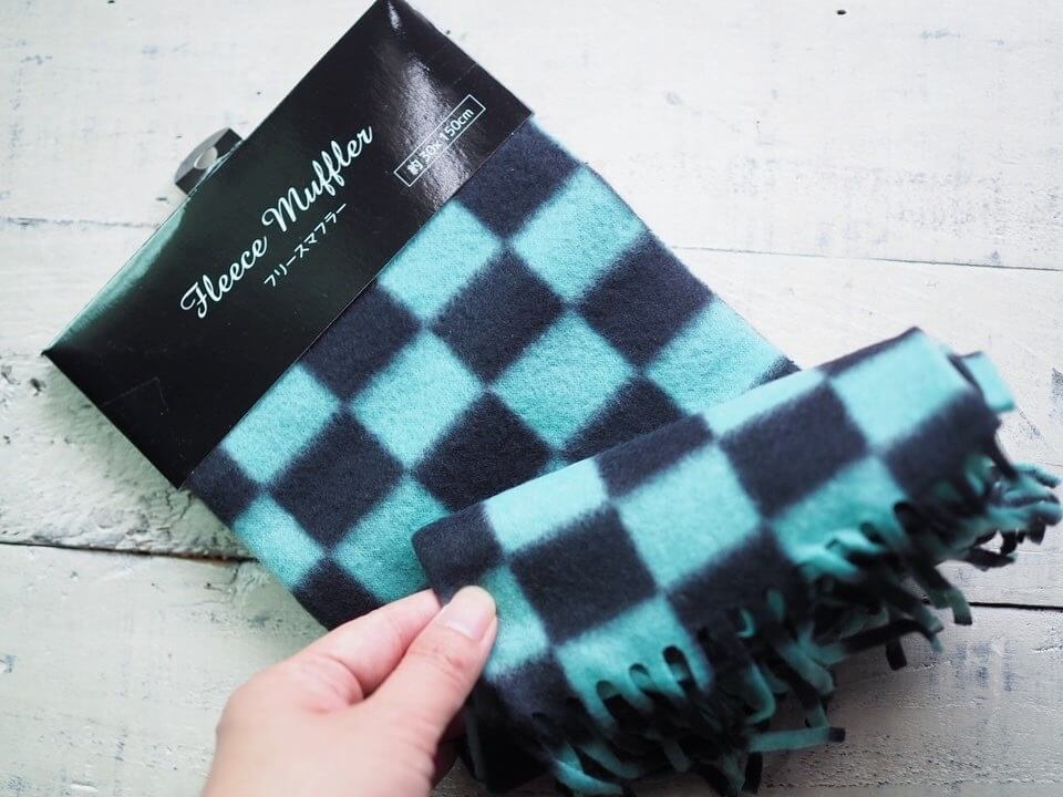 最後にご紹介するのは、キャンドゥの新商品「フリースマフラー市松模様」です。