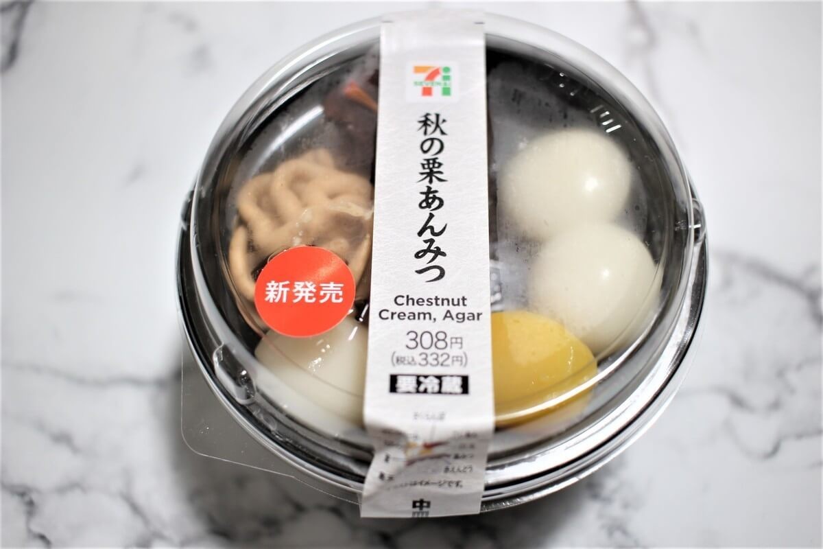 セブンイレブンのスイーツコーナーで今回気になったのは「秋の栗あんみつ」。