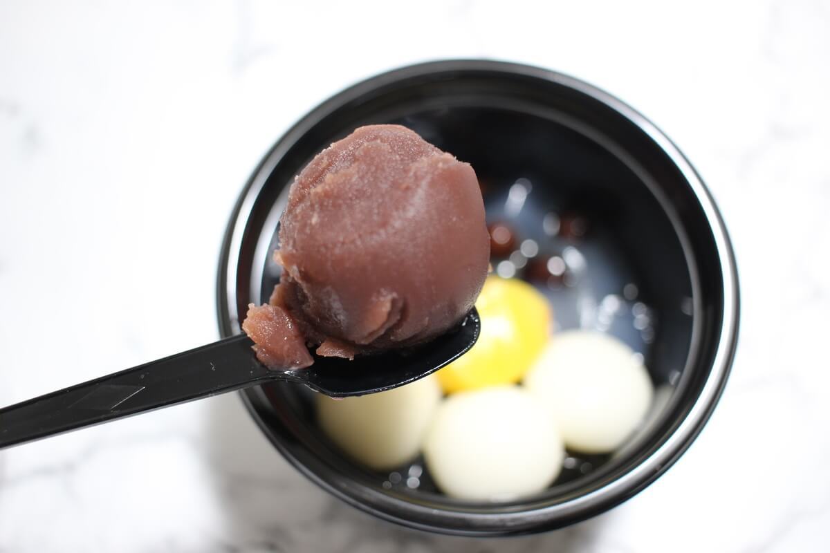 こしあんは濃厚でねっとりとしていて、さっぱりとした寒天とよく合います。