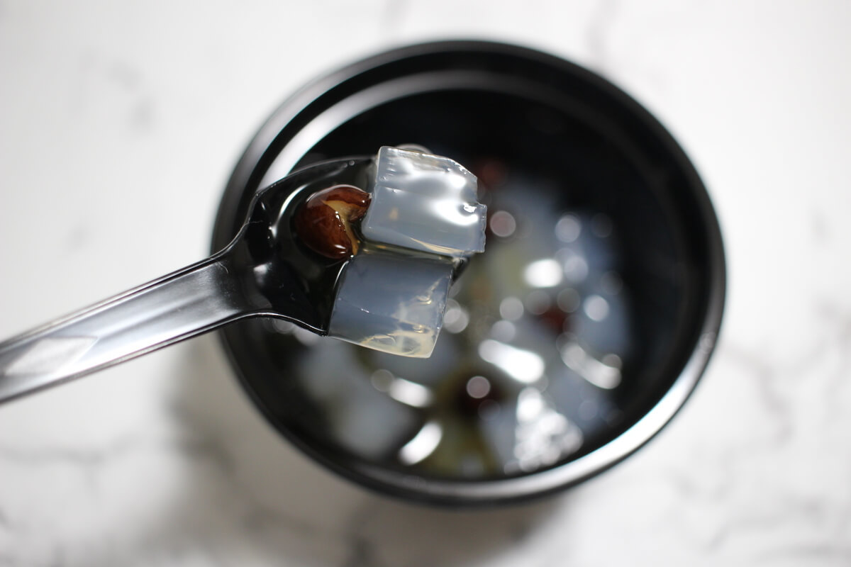 蓋を開けて気づいたのですが、トッピングと寒天は別添えになっていました。