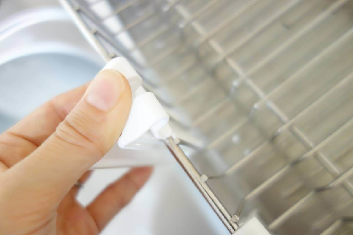 早速、ボトル用水切りを洗剤で洗った後、水切りカゴに掛けて使ってみました。