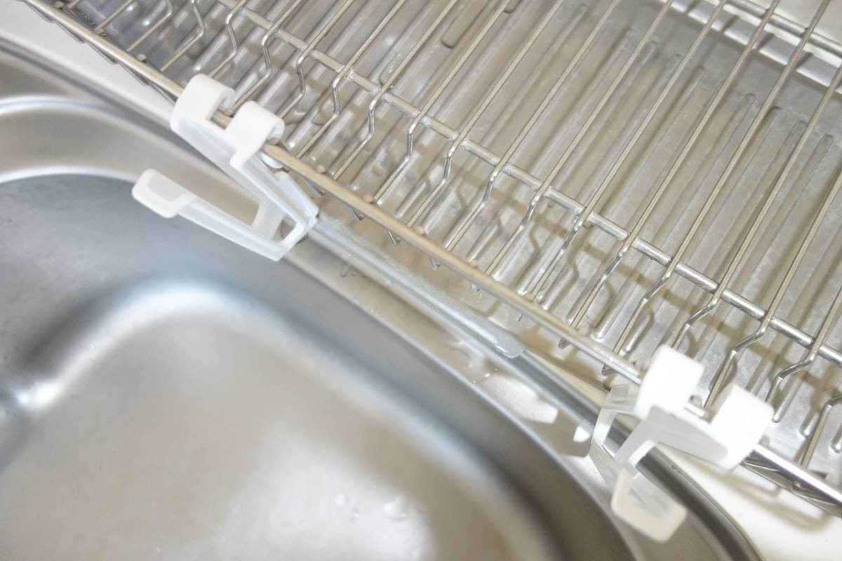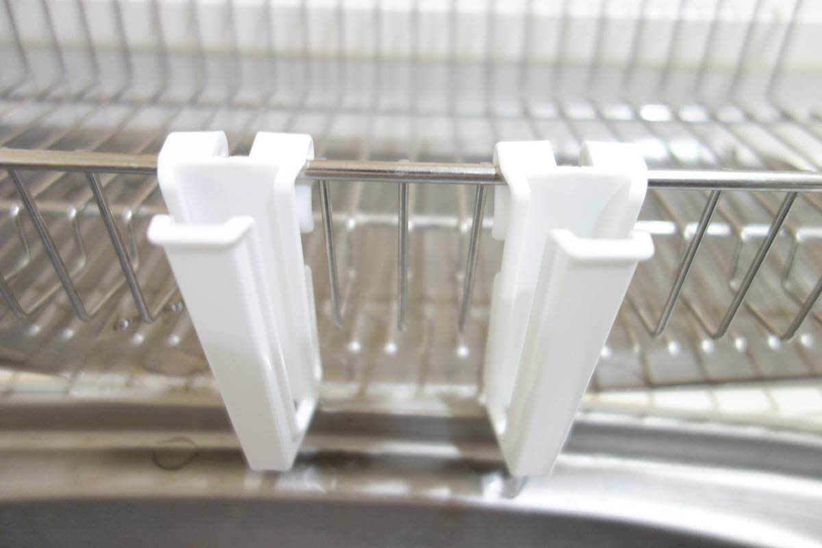 また、耐荷重は2個で300gまでとなっています。重いグラスを掛けたり、グラスを掛け過ぎたりすると水切りカゴが傾くので注意が必要です。