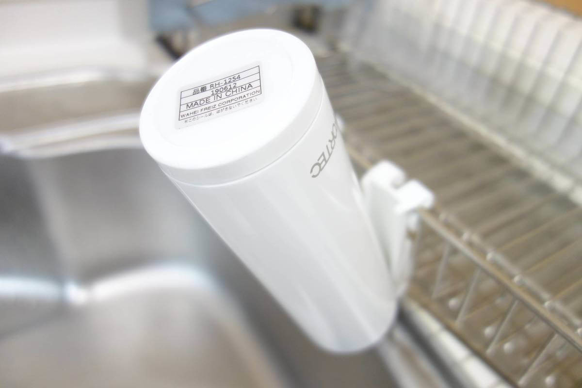 既存の水切りカゴに商品を取り付けて、コップや水筒、ペットボトルの水切りとして使える、ということだったので、試しに購入してみました。
