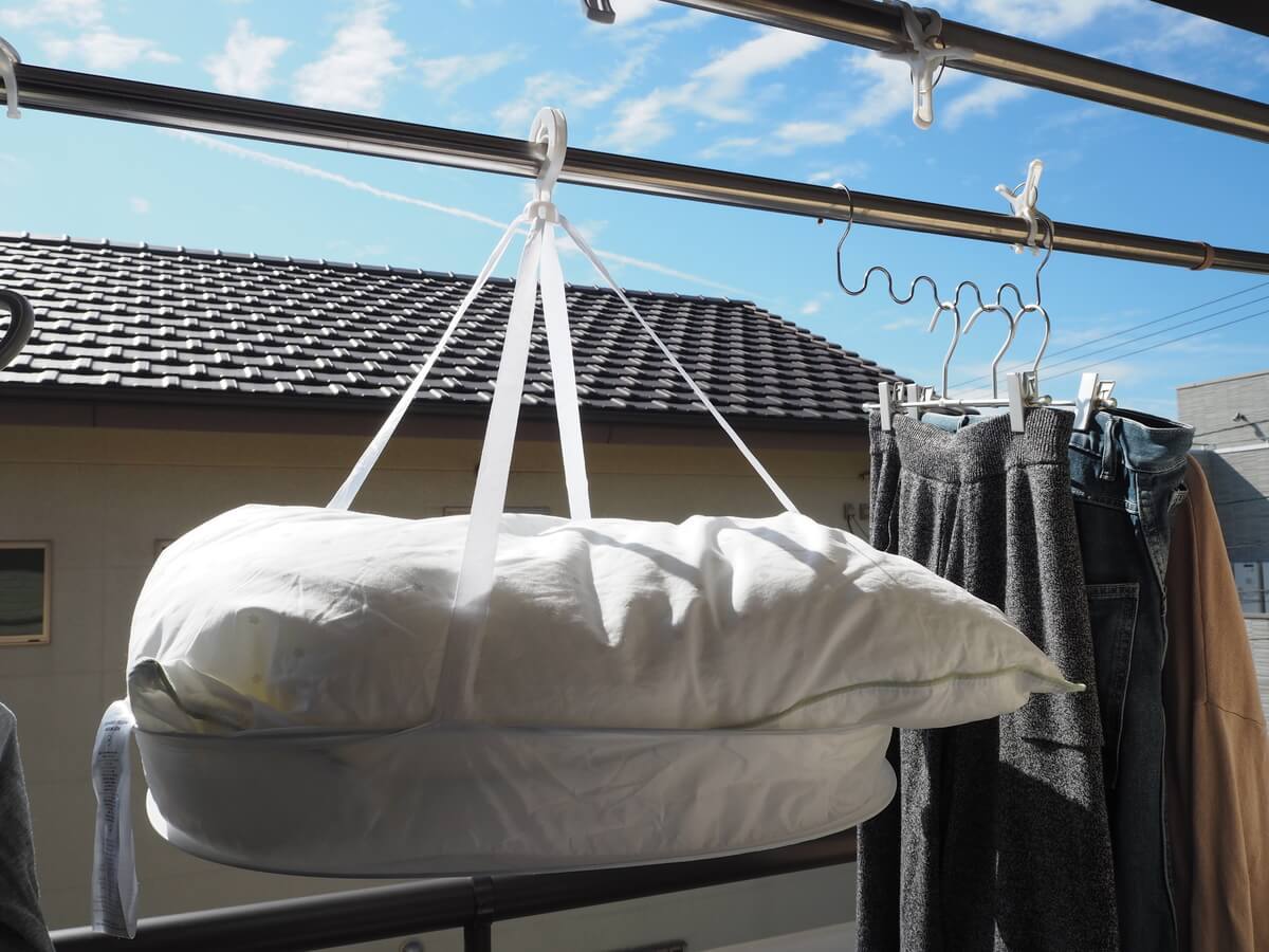 枕の天日干しにも持ってこいですね。使わない時は8の字にぐるっと折りたたむことができます。