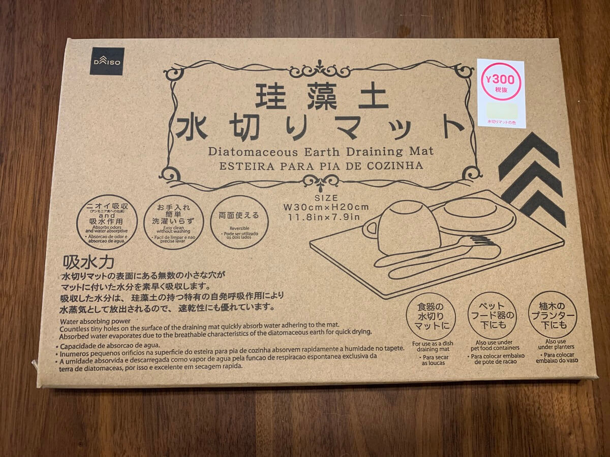 そんな時に、ダイソーで見つけたのは、人気の珪藻土水切りマットです。
