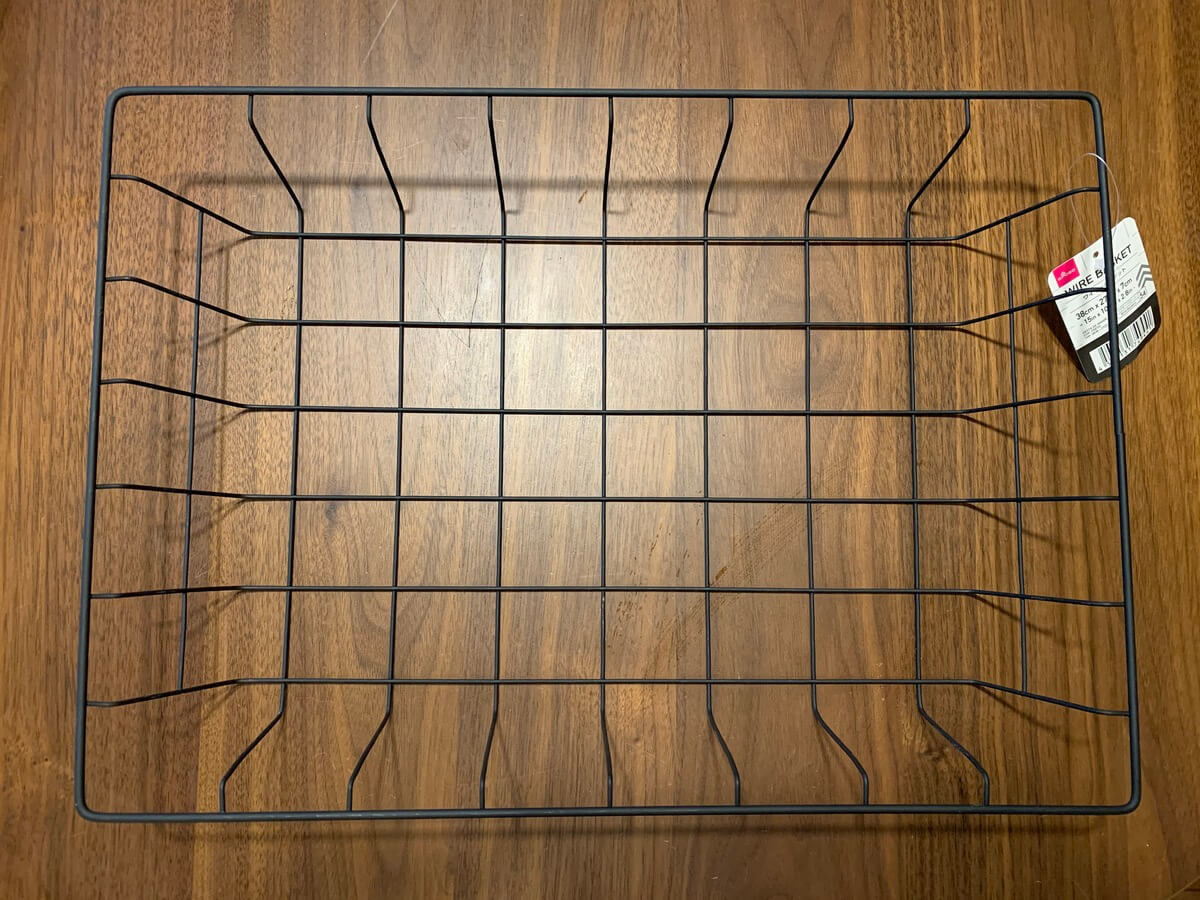 ダイソーにはさまざまなサイズやデザインのワイヤーバスケットが販売されていて、値段もさまざまですが、今回私が購入したのはシンプルなこちらのワイヤーバスケットです。