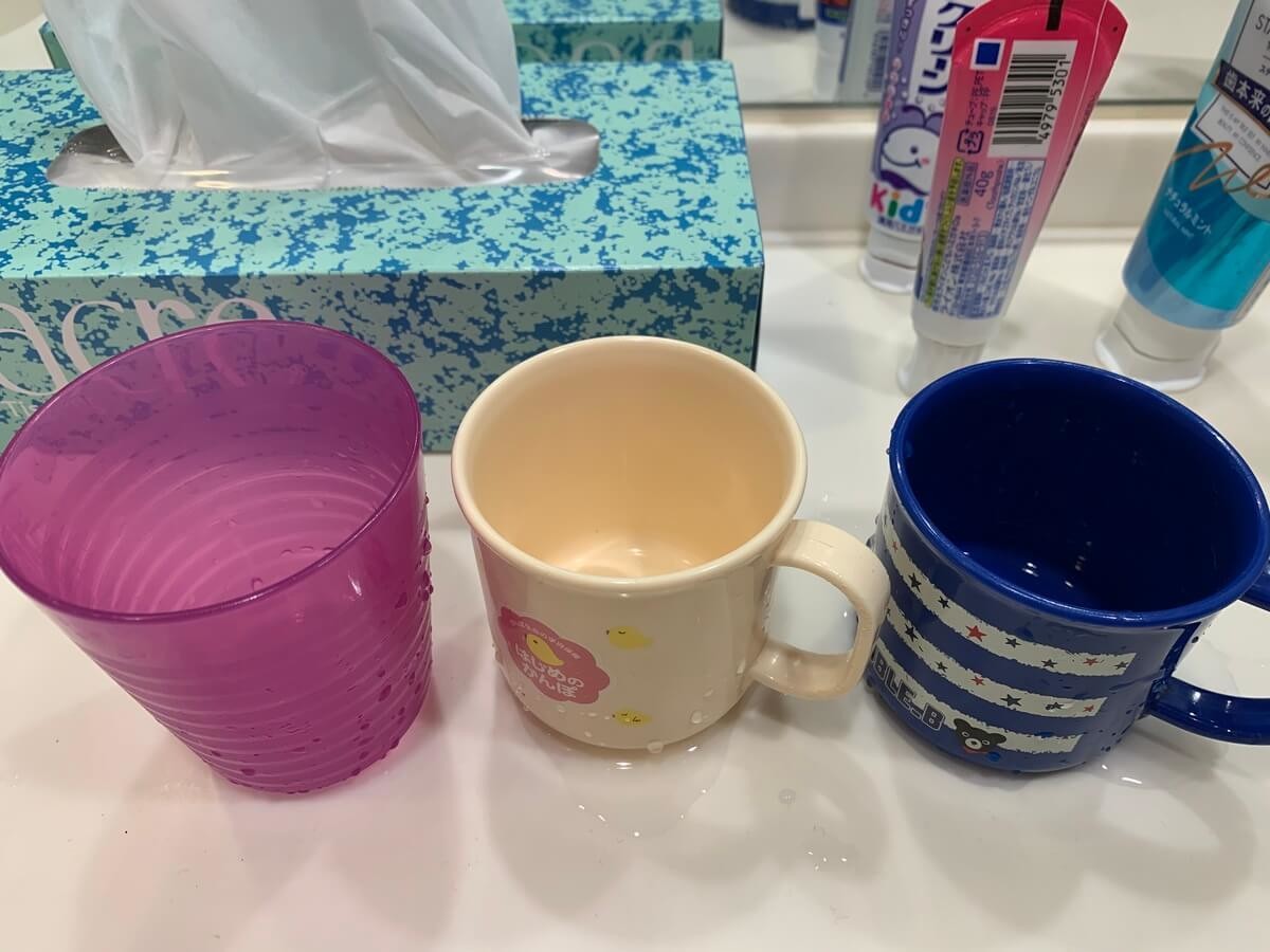 とくに子どもたちはダイナミックに手や顔を洗うので(たまに目を離すと水遊びしていることも)、洗面所周りは水滴が飛び散るどころか、ところどころ水たまりができている状態。
