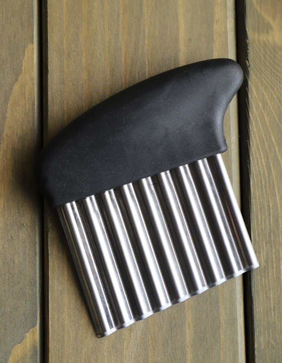 じゃがいもは皮をむき、ウェーブカッターで7~8ミリ幅ほどに切り、さっと洗い水を切っておきます。