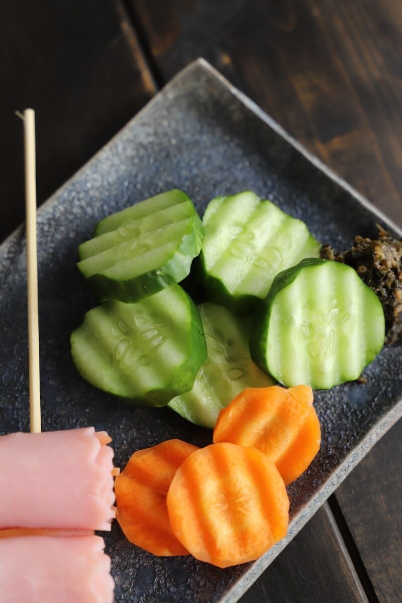 細長くカットする野菜スティックも良いですが、ウェーブカッターで輪切りにし、串など刺していただく方法も見た目に楽しくおススメです!