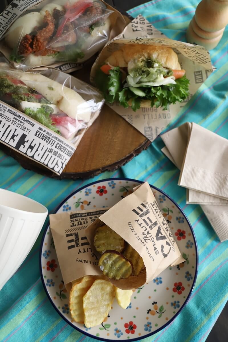買ってきたサンドイッチなども、味気ない袋に入れておくよりも、セリアで購入したものに入れ替えるとおしゃれなサンドイッチに早変わり!?