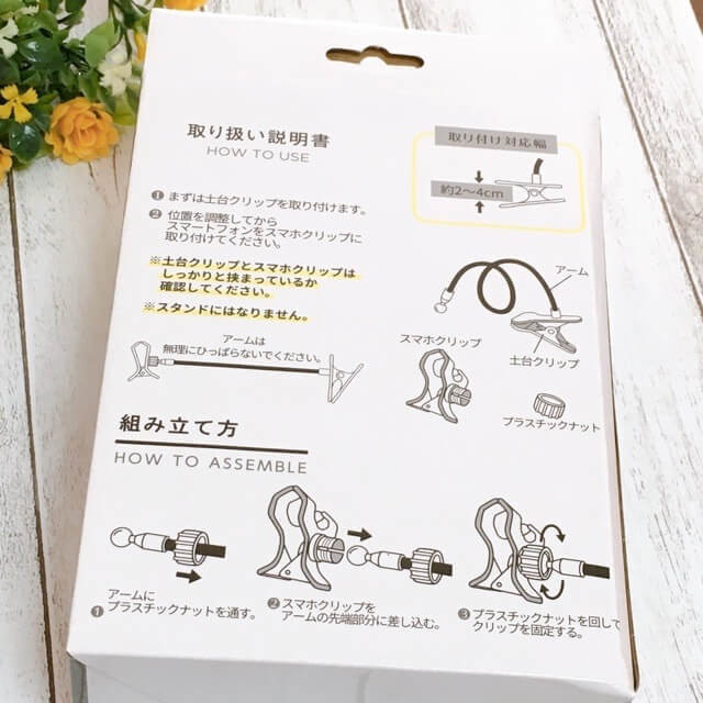 「スマホクリップホルダー」は箱からしてちょっと高そう……と思いましたが300円(税別)です。