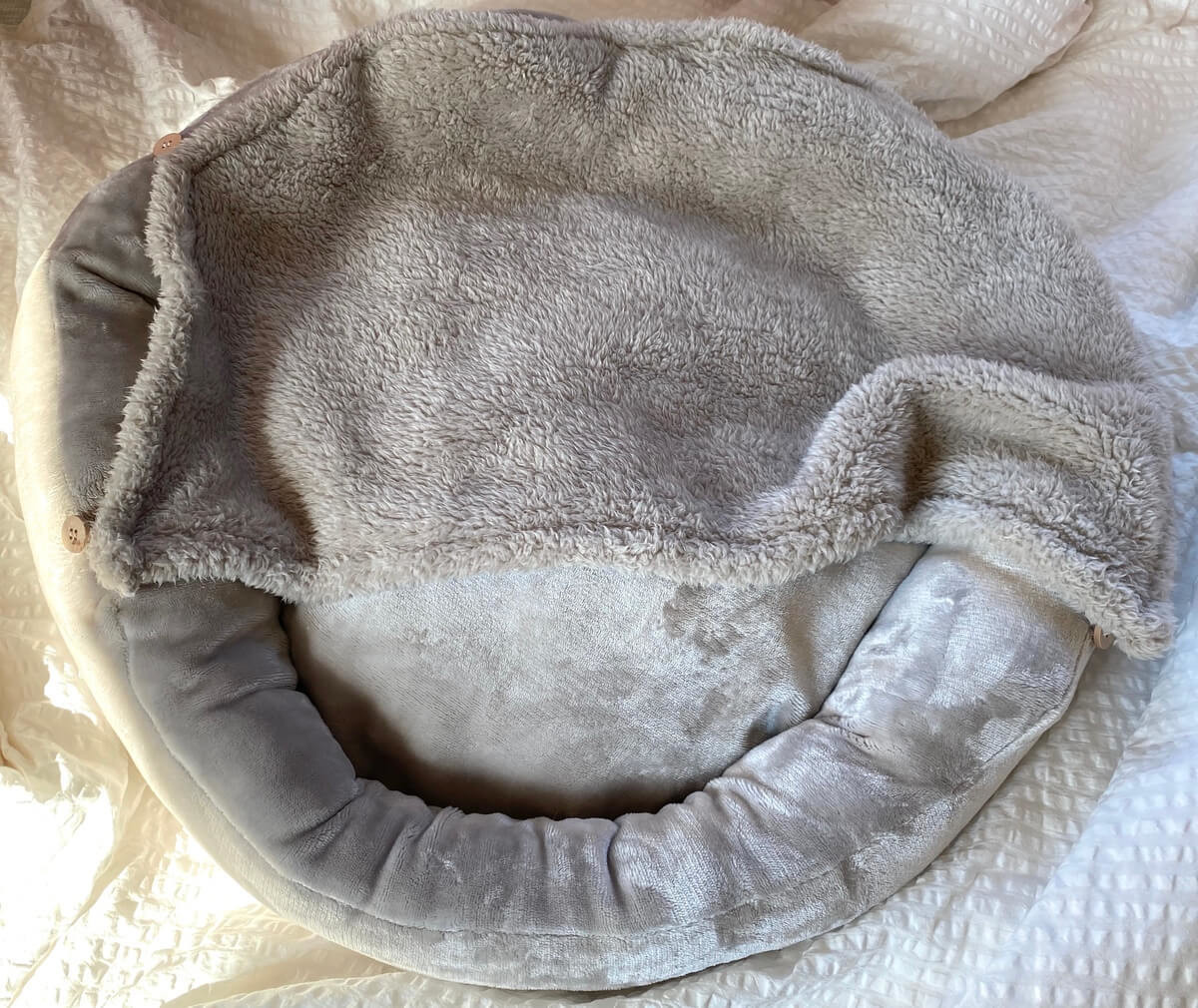 ペットベッドの上にかかっているブランケットはボタンでとめられるデザインになっているため、ボタンに慣れていないペットややんちゃなペットだと破壊してしまったり誤飲してしまったりする可能性があります。