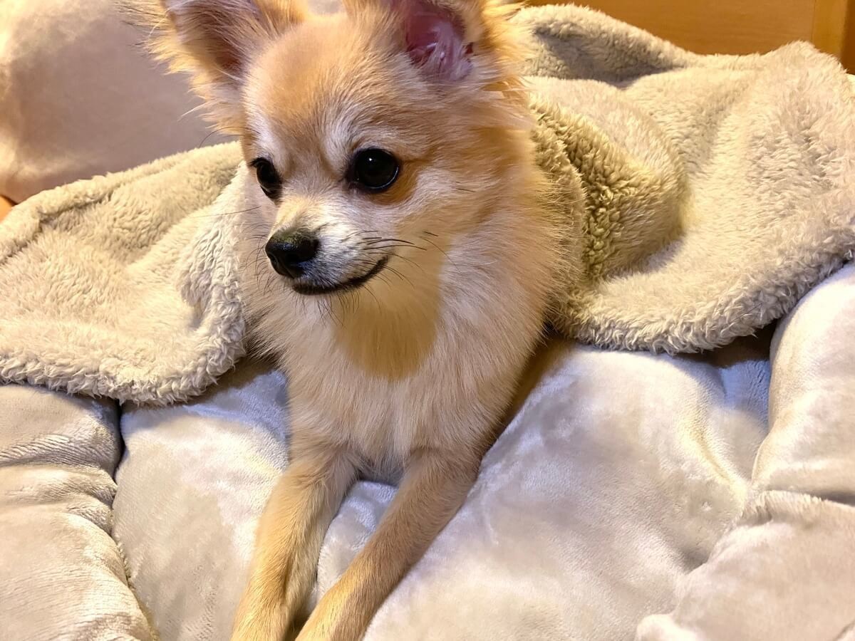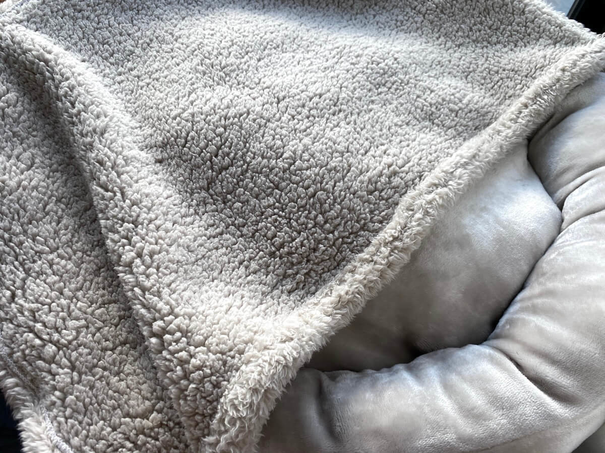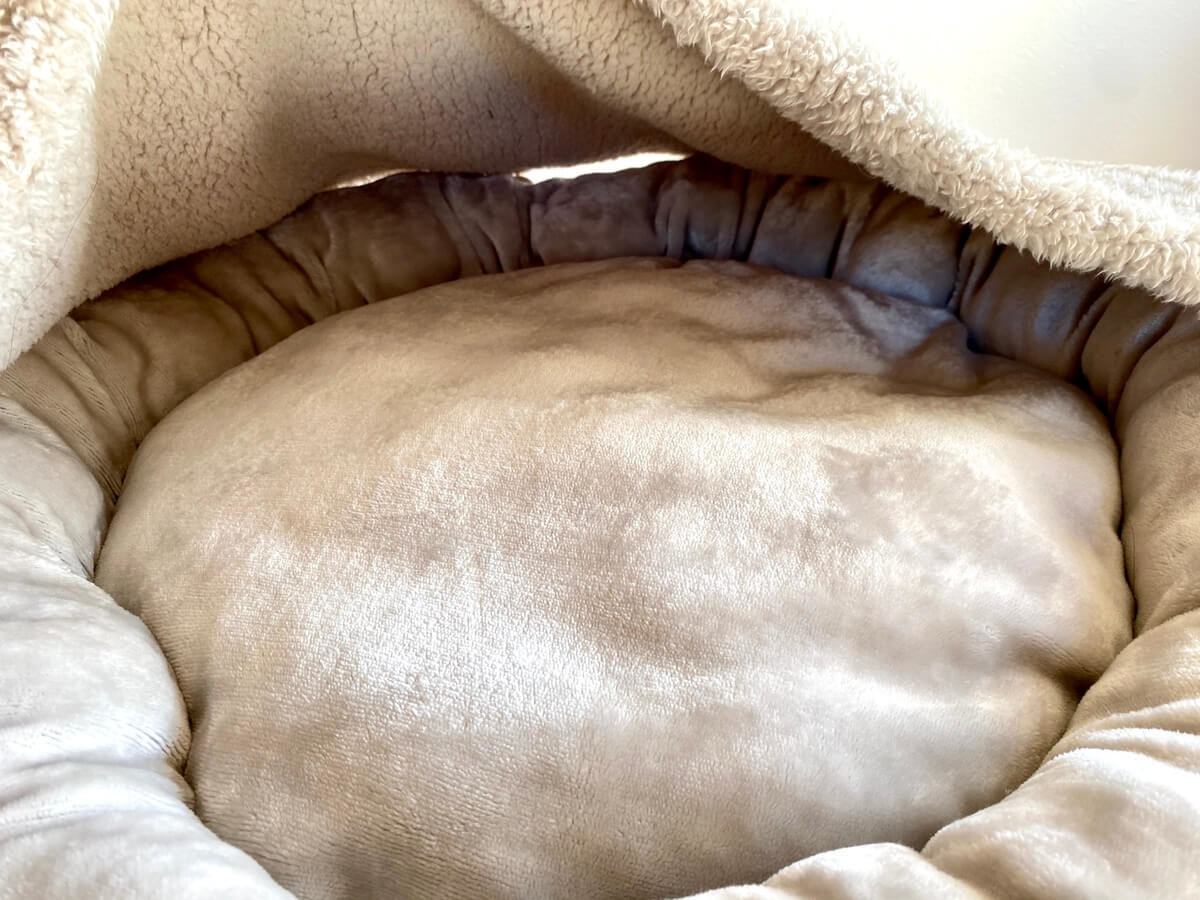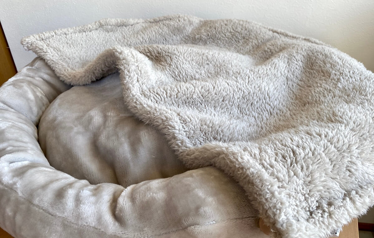 その点、今回購入したニトリのペットベッドにはブランケットもついているので、身体全体を温めることができます。ブランケットはふんわりとかかっているため、ペットが自分で中に入り込むこともできますよ!