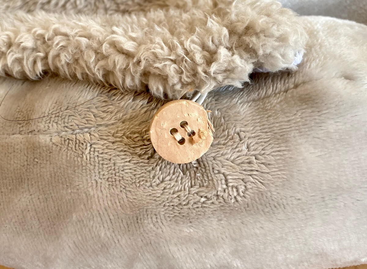 糸で簡単に縫い付けられているだけなので、不安な方は最初からボタンを取り外し、ブランケットを縫い付けてしまう方がいいかもしれません。