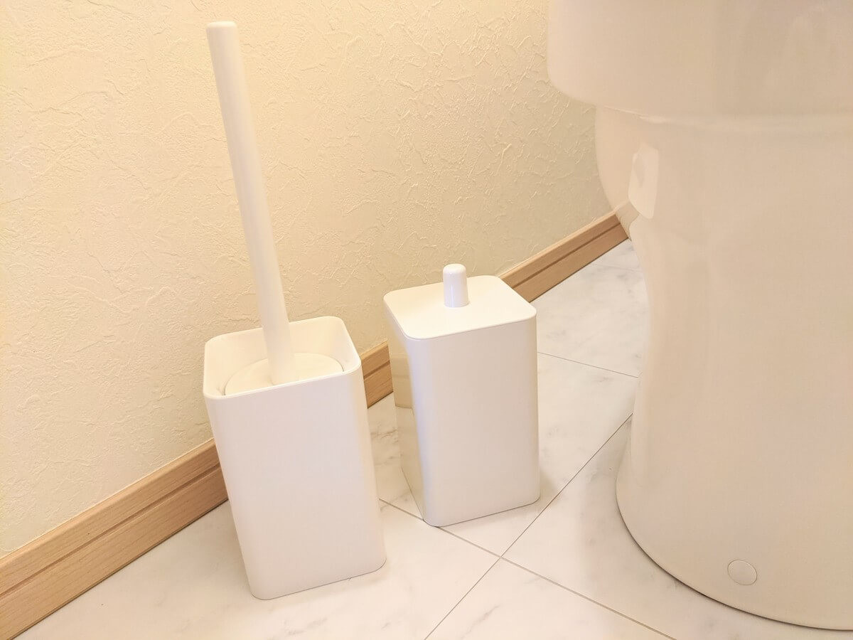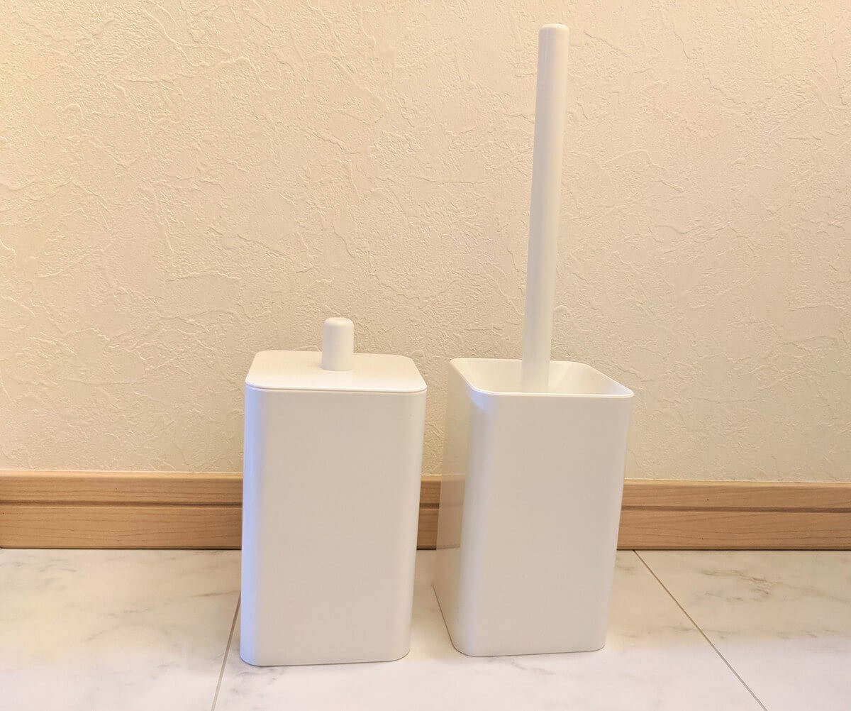 こちらが我が家で愛用している、無印良品のトイレブラシとトイレポットです。 どちらも1,000円以下とリーズナブルなお値段が魅力的。