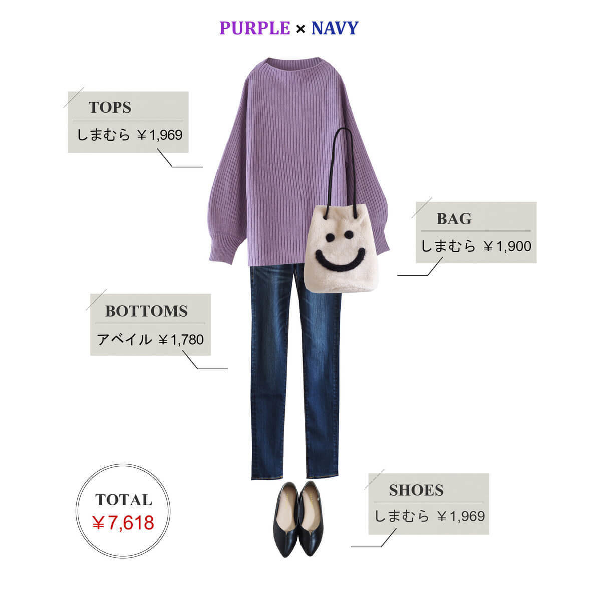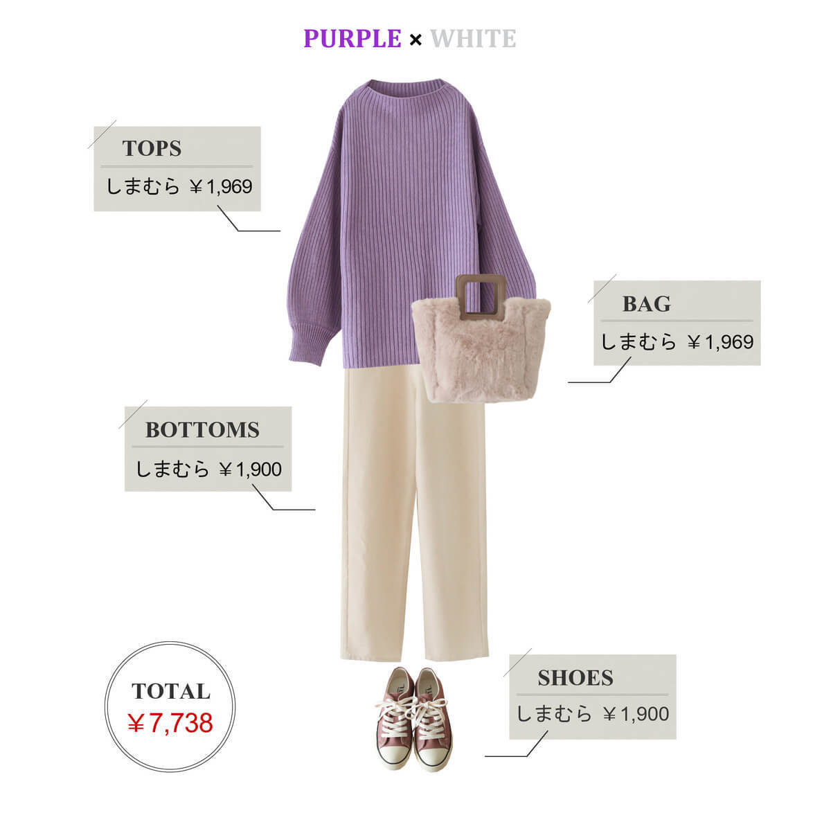 【しまむら】大人気「プチプラのあや」コラボ最新ニットを徹底着回し!パープルコーデ4選