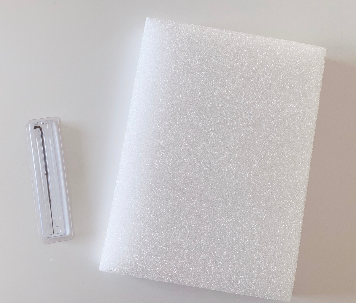 こちらは羊毛フェルトを作るときに必ず必要な針とスポンジのセットです。これでもちろん100円!
