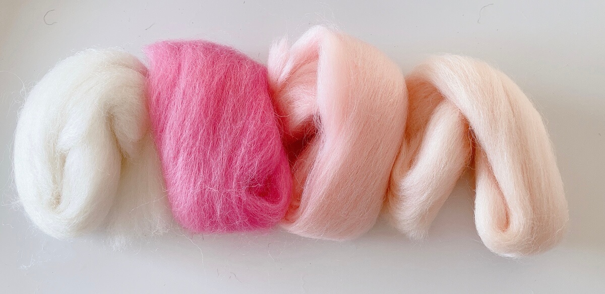 羊毛はなんと1パックに4色も入って100円!小さめの作品であれば十分足りる量です。 私はピンク系と黒系を買ってみました。