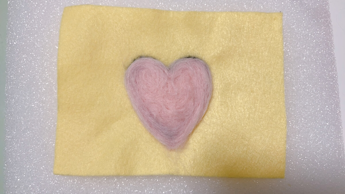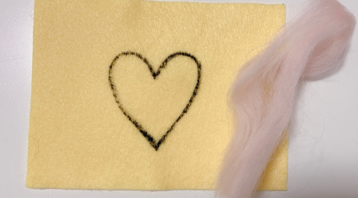 フェルトであればなんでもOK。羊毛フェルトは想像以上に根気がいる作業なので小さく単純な形の作品から挑戦していきましょう。簡単にハートの絵を書いてみました。早速これに羊毛フェルトをつけていきましょう。