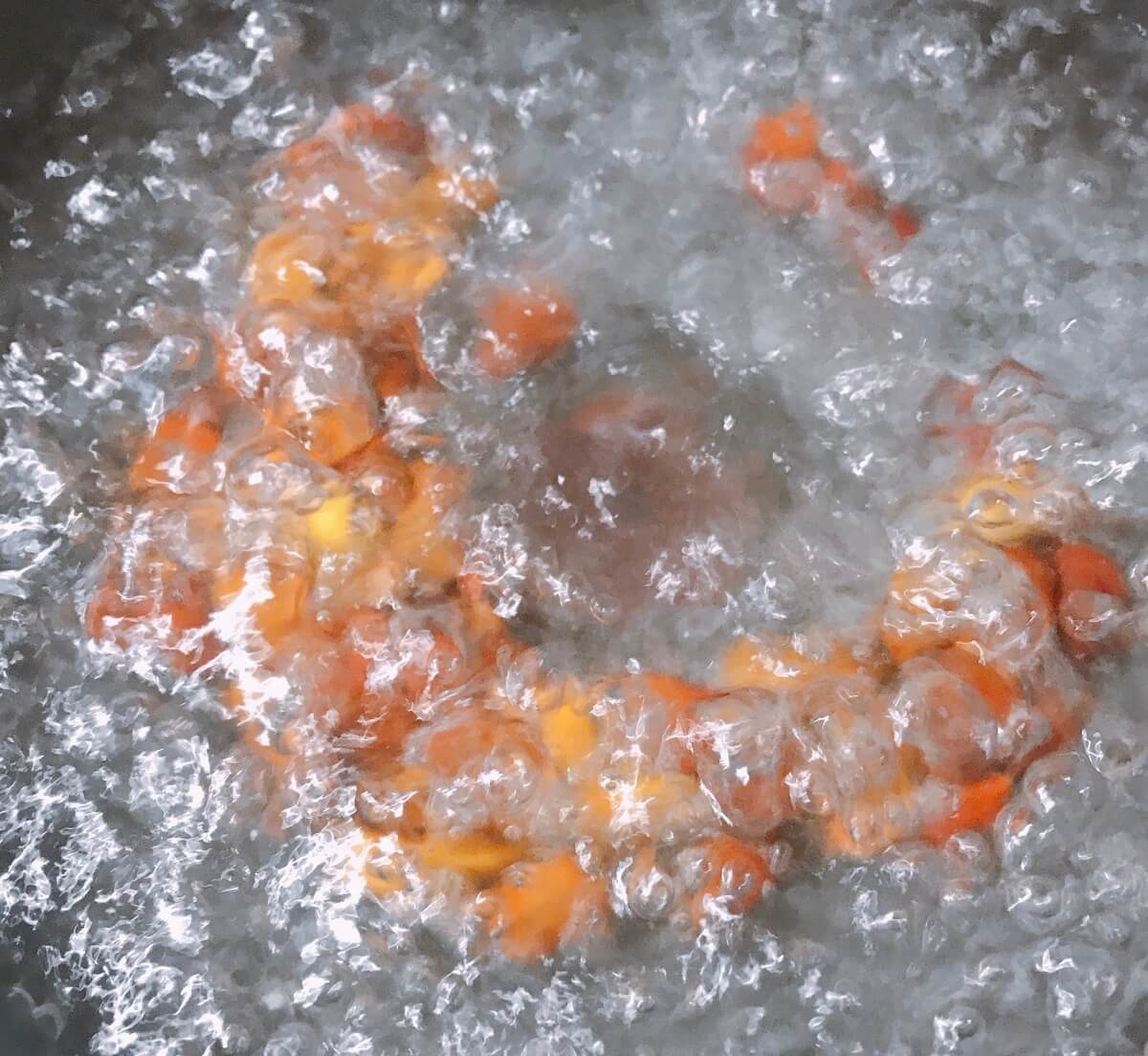 お鍋とお湯さえあればできる方法です。沸騰したお湯にどんぐりを投入、火傷には十分気を付けてくださいね。