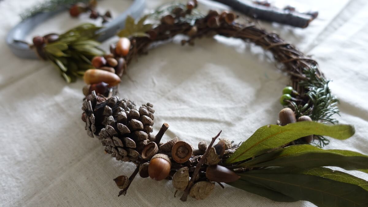 セリアの隠れヒット!「ラタンリース」でプロ級の仕上がり!実質タダの「どんぐりアート」を解説