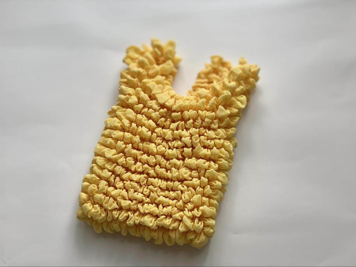 見かけはとってもキュートでポップ。表面はまるで着物の絞りのよう。なんとこの「総しぼり」は手作業で作られているそうです。