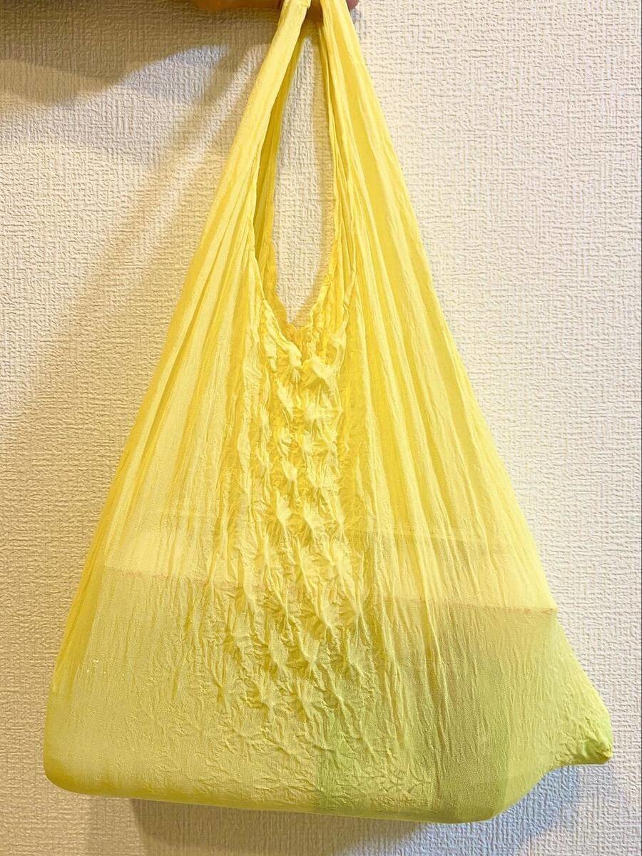 折りたためるタイプのエコバッグはシワになりがちですが、伸びきっていないしぼり部分を除けばさほど気になりません。