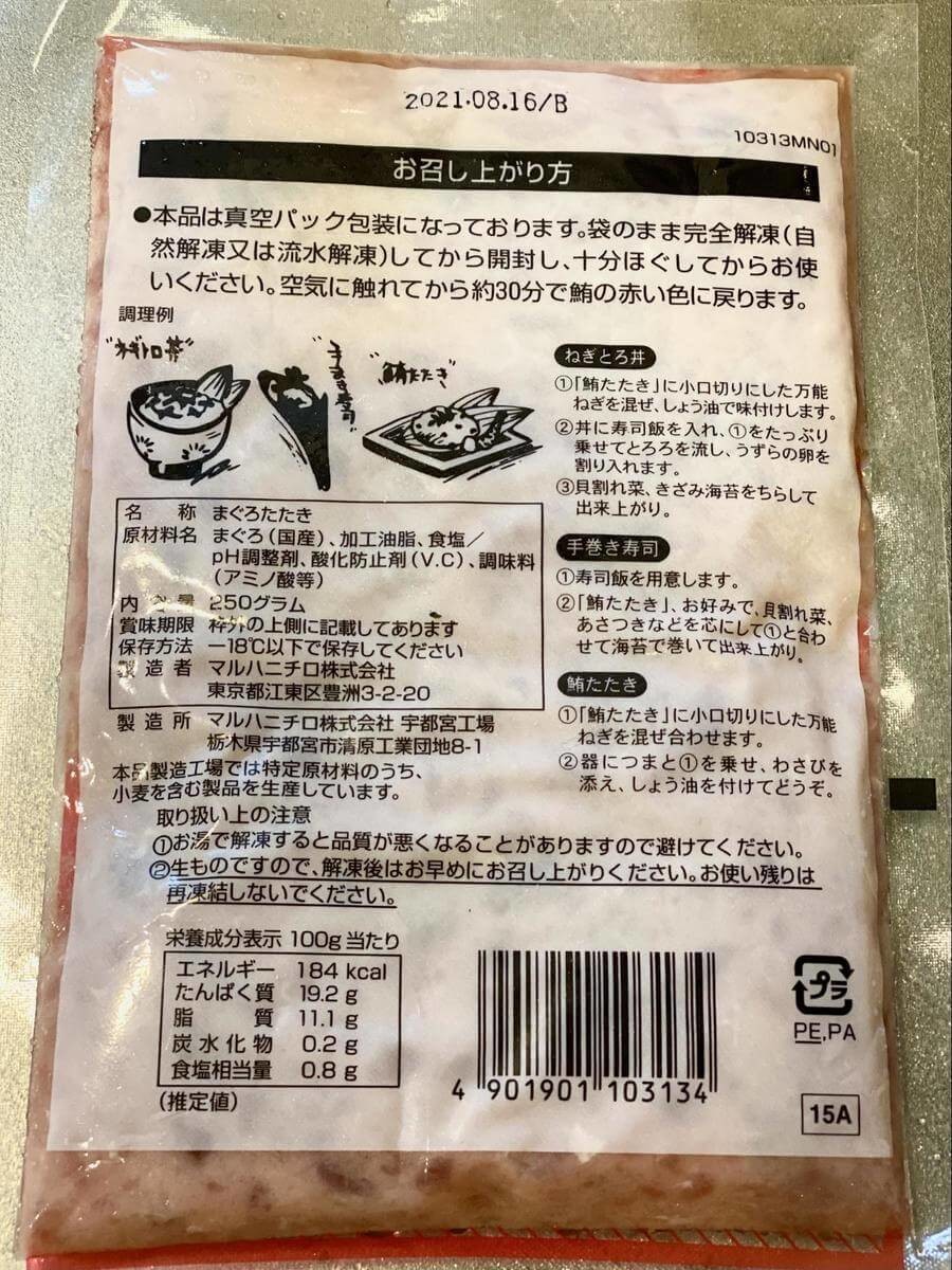 そこで見つけたのが業務スーパーで見つけた「冷凍鮪たたき」です。