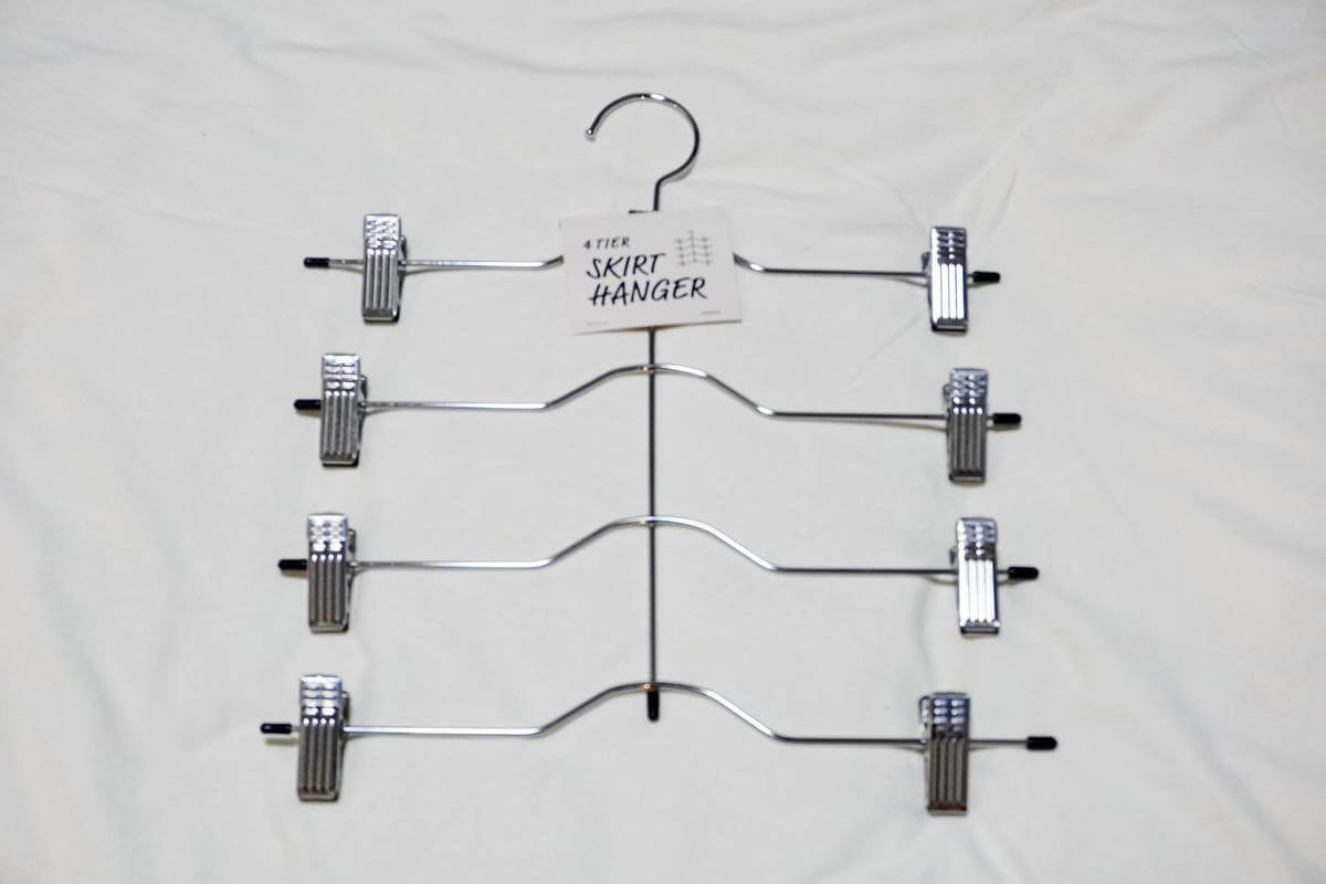 クローゼットが狭い方や、お洋服がたくさんある方には4連ハンガーが便利です。スカートだけじゃなく、パンツも掛けられて省スペースで収納できます!