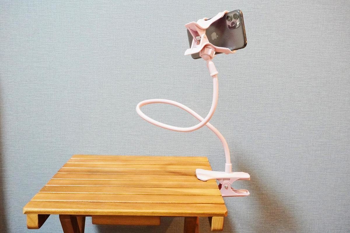 クリップ部分がかなりしっかり挟んでくれて、iPhone 11 Proを挟んでもかなりの安定感です。キッチンでどこかに挟めばレシピを見ながら料理できます。