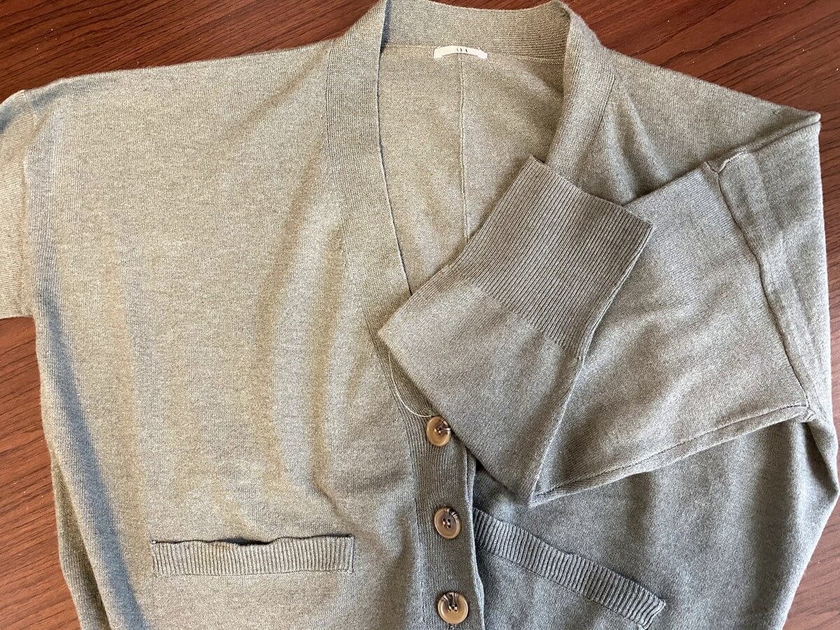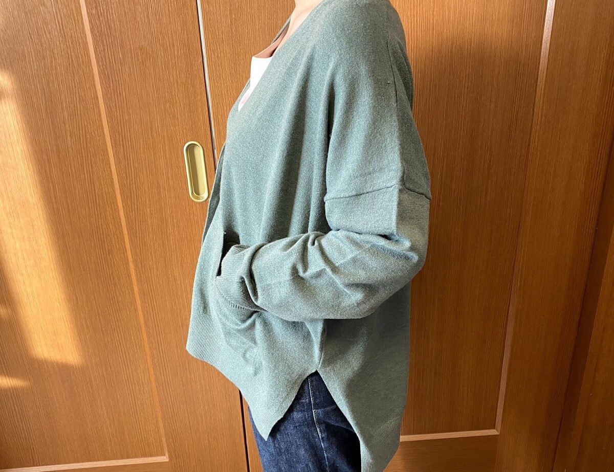 中でもおすすめなのがこちらのワイドニットカーディガン(1790円+税)です。