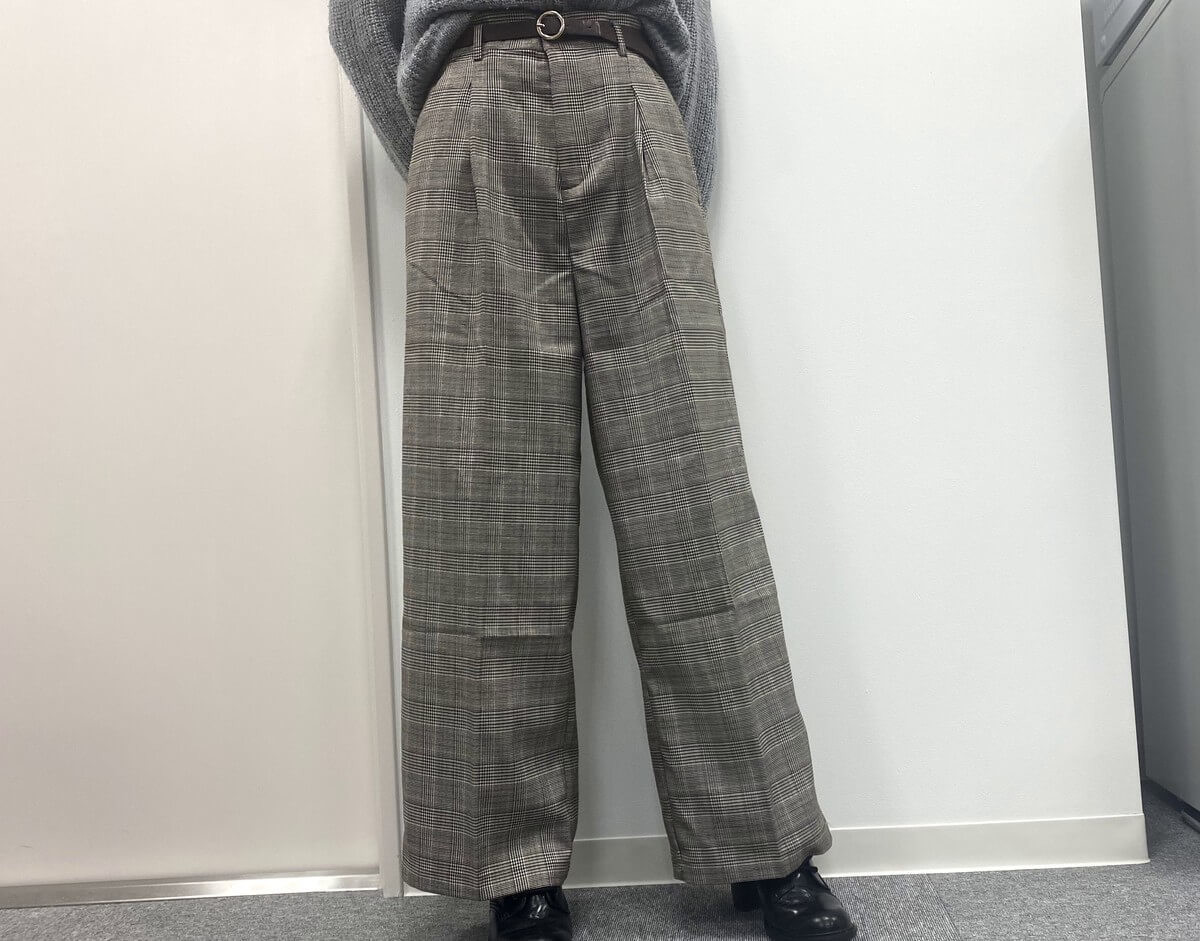 次に紹介するのが秋にぴったりのベルト付ワイドパンツ(1790円+税)です。