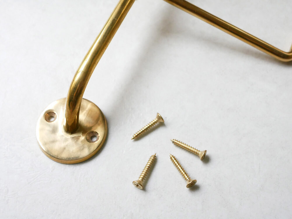 壁に付属のネジで付ければ、まるで海外のホテルに泊まっているかのよう。華やかながらどこか落ち着く真鍮で作られた上品アイテムは、いつもの空間に“ムード感”を漂わせてくれます。