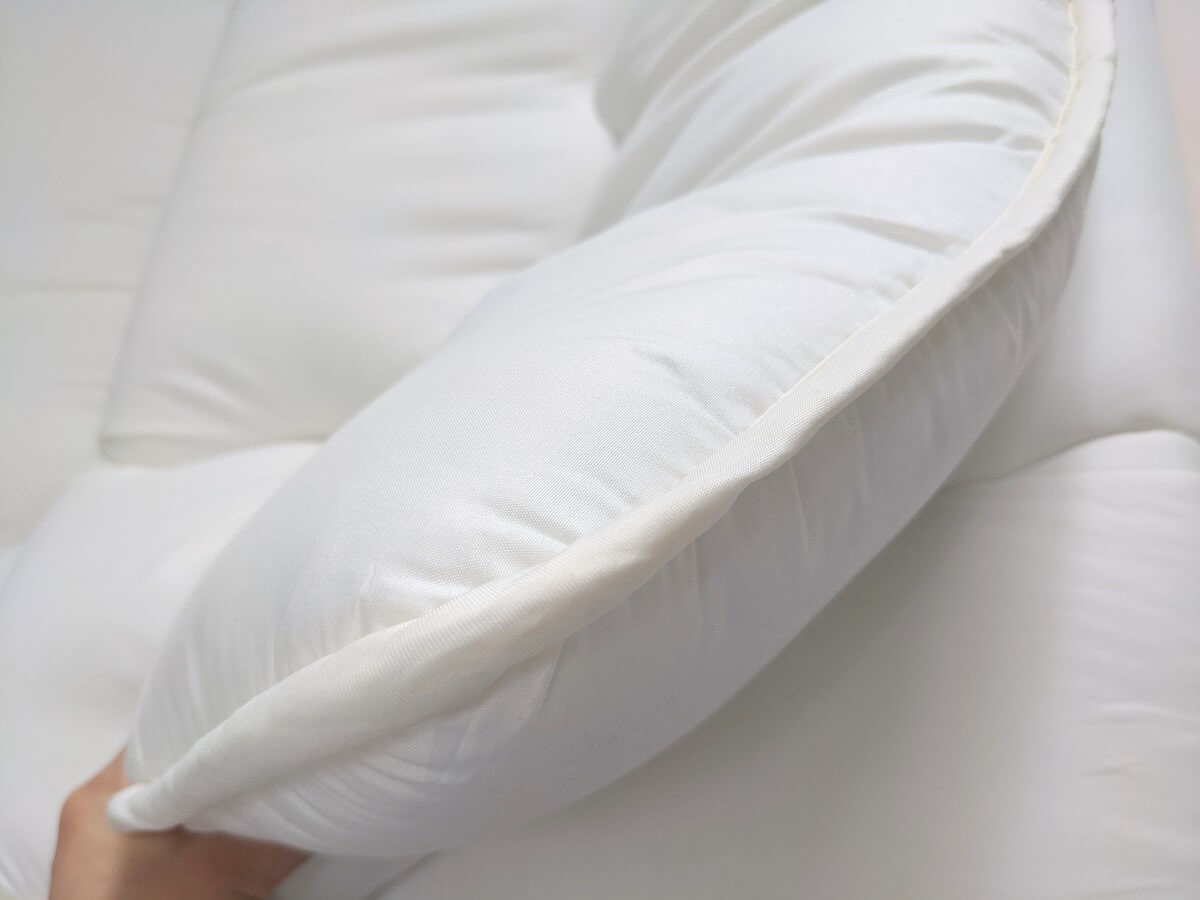 ポリエステル綿を使用しており、程良い厚みと弾力性があります。 カラーはアイボリー、重さは約3.8kgと軽いです。