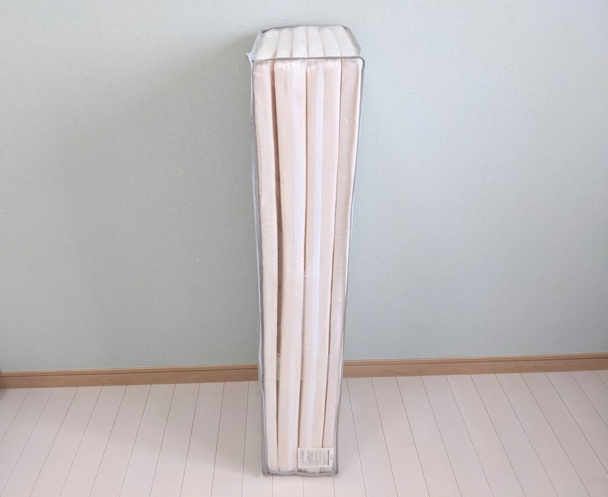 次に紹介するのは、ニトリの「6つ折りマットレス」。 カラーはアイボリー、素材はかためのウレタンフォームを使用しています。