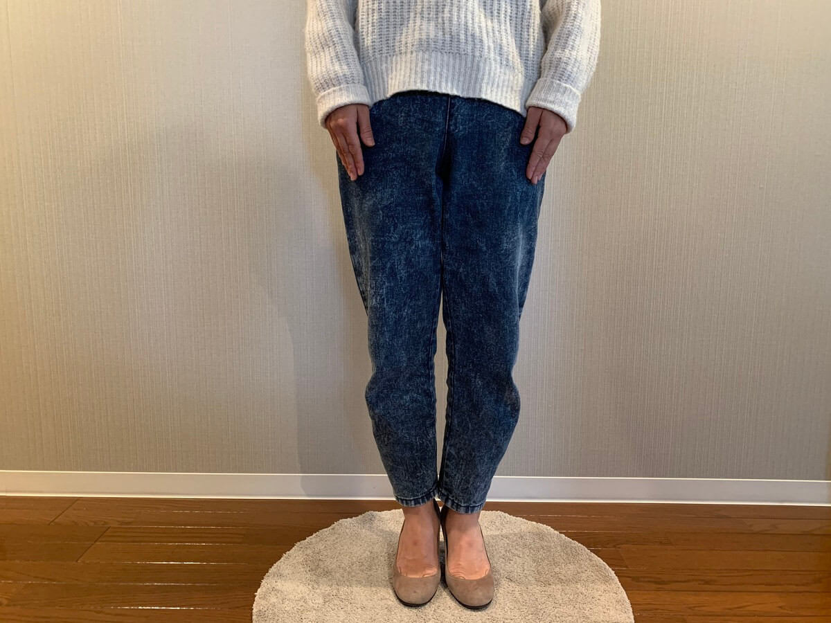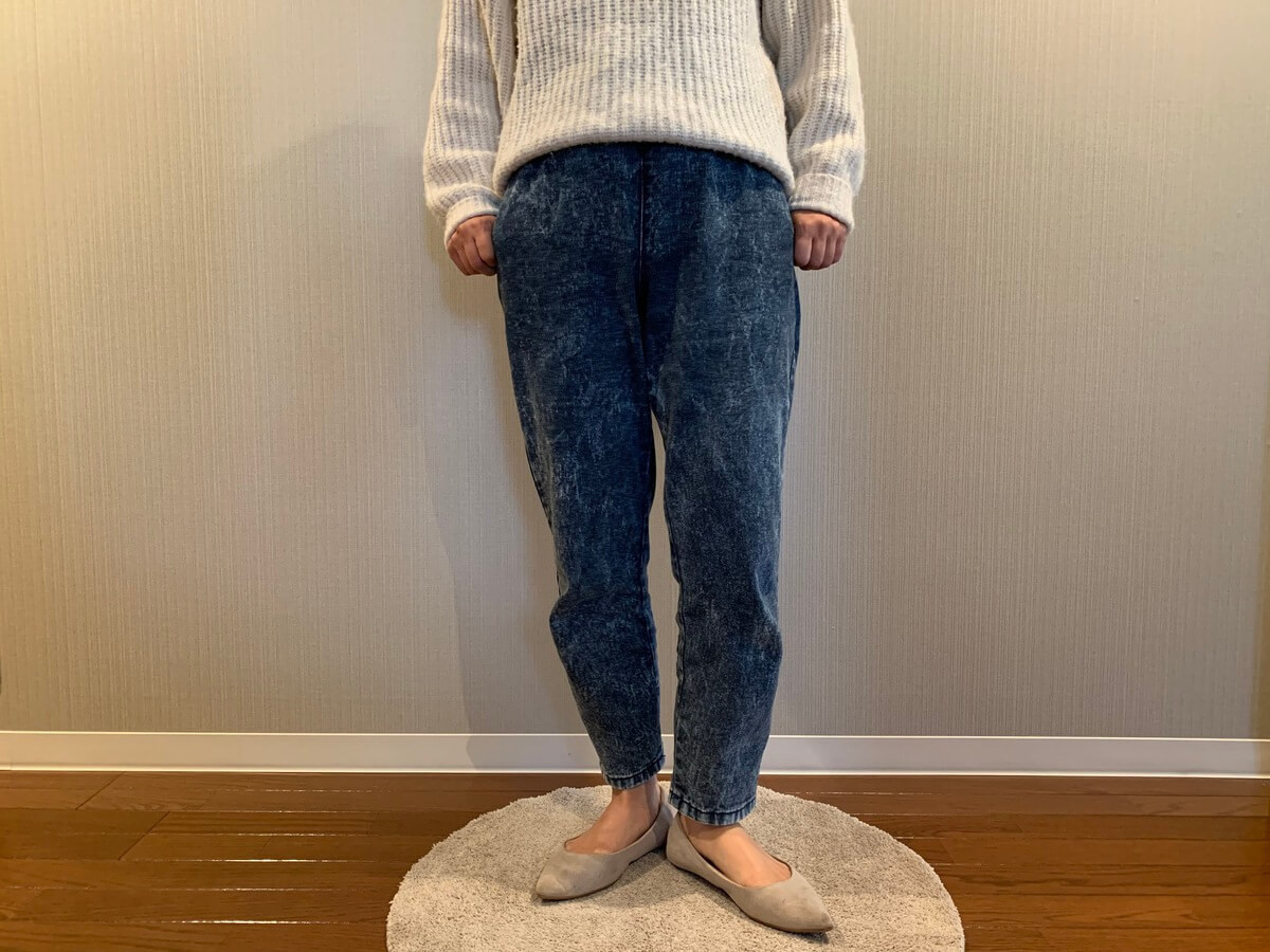 ズボンの裾が細くなっているので、フラットパンプスとの相性抜群です。長さもちょうど良いです。