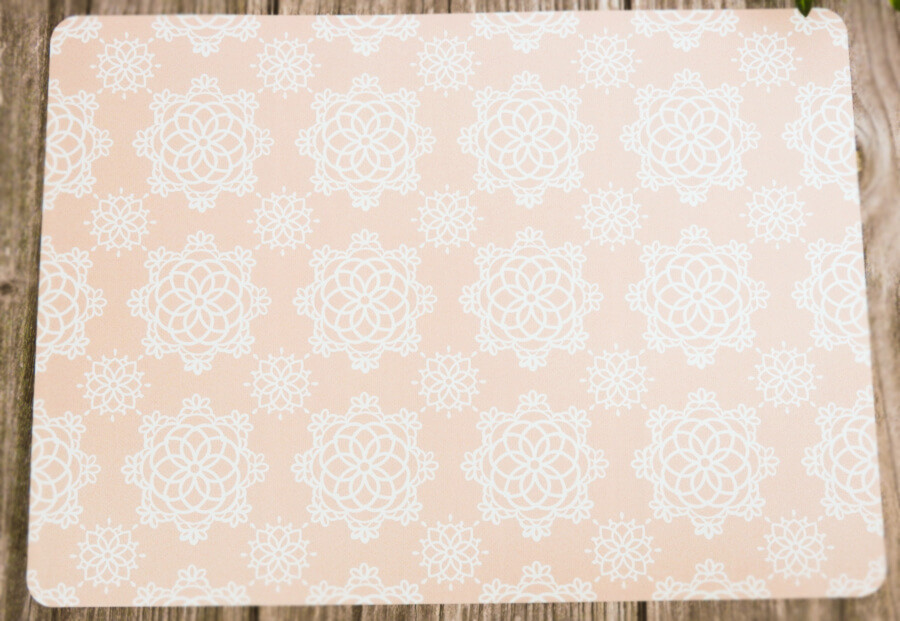 淡いピンクの色合いで上品ながらも可愛らしい「ランチョンマット フィオレ」79円(税抜)。100均よりも安い79円(税抜)で販売されていました。