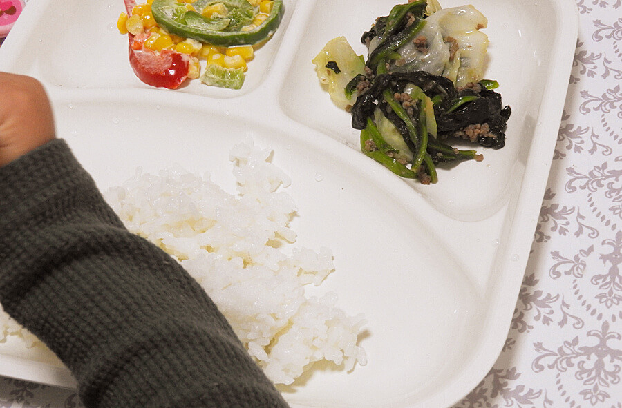 ランチョンマットを置いたところ「お姫様みたいね」と娘はご満悦の様子。初日はテンションがあがり過ぎて食べるまでに時間がかかってしまいましたが、とっても気に入ったようでした。