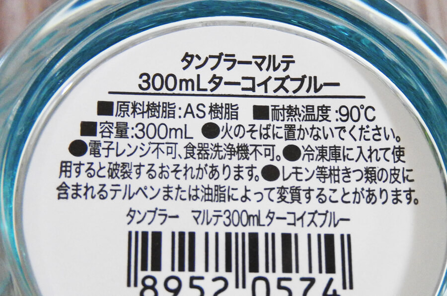 凹凸感が気に入ったらしい5歳の息子にニトリデコホーム「タンブラー ターコイズブルー」185円(税抜)を購入。やや大きめのタンブラーで持ちにくいのが難点ですが、うっかり落としてもガラス製のグラスと違ってパリン!と割れないのがいいですね。口が大きく開いているため、タンブラーの底までスポンジで洗いやすいのが◎。